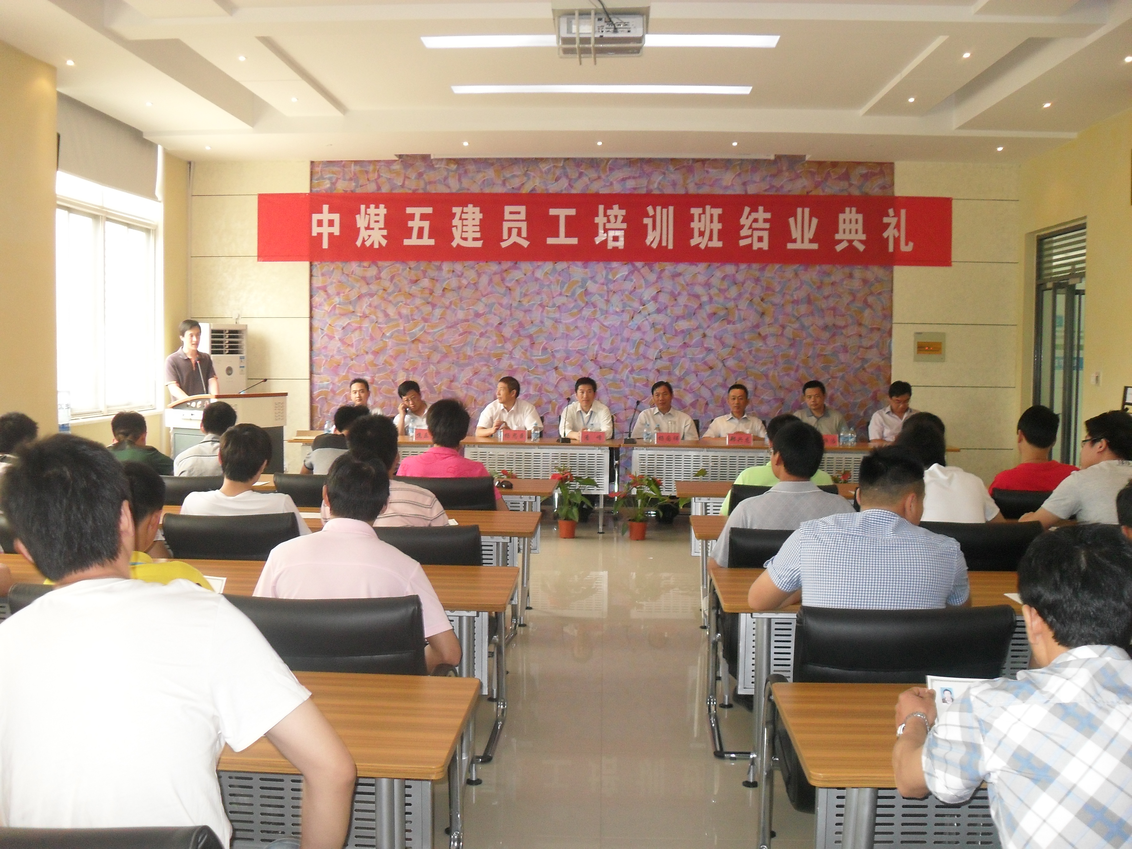 5月30日上午,中煤五建机械培训班结业典礼仪式在我校建筑技术馆会议室隆重举行。我校机电工程学院党总支记潘峰、副书记朱铁壁以及中煤五建一处副处长杨国祥、三处副处长杨思臣等6名企业领导出席了仪式,会议由鹿毅主持。