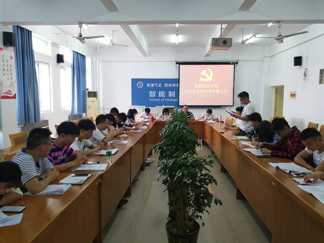 5月24日下午4:30,智能制造学院学生党支部在第一实训楼504召开全体学生党员大会,主要议题是发展陈宇、徐加金、刘洋、王震、马博、杨瑞洋、杜靖毅、皇甫召锦8名学生为预备党员。主要目的是为中国共产党输入新鲜血液,充分发扬党员的民主权利,使党员在本支部发展党员工作过程中充分表达个人意愿,真正保障新党员是严格按照党员标准,从突出的入党积极分子和培养对象中选拔的最好人选,确保新党员质量。参加今天会议的为学生支部全体党员。此次大会到会的正式党员6人,出席会议的6人,有表决权的正式党员实到会人数超过应到会人数的一半,符合党章规定。会议经过个人宣读志愿书、入党介绍人介绍个人情况、正式党员投票、宣读大会决议、本人表态等过程,陈宇、徐加金、刘洋、王震、马博、杨瑞洋、杜靖毅、皇甫召锦8名学生全票通过顺利成为预备党员。